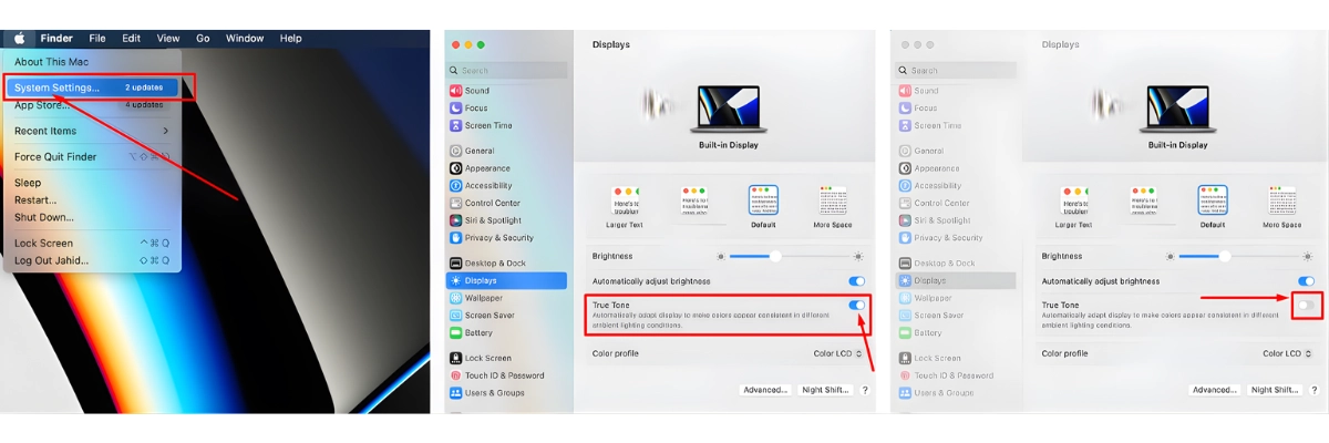 Toggle off the switch to turn off the “True Tone” technology on your MacBook screen.