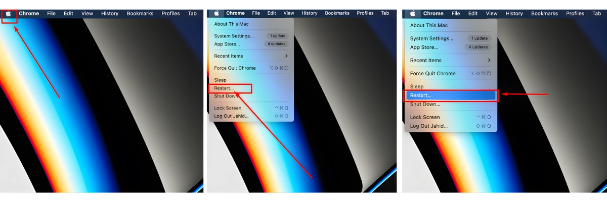 This is the most basic and easiest way you can do before starting to panic. As a matter of fact, some user’s MacBook’s flickering issues get fixed in this simple restart. Follow the instructions below to restart your MacBook: