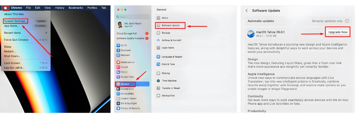 > Select “Software Update” Available updates will be there with a dedicated icon.